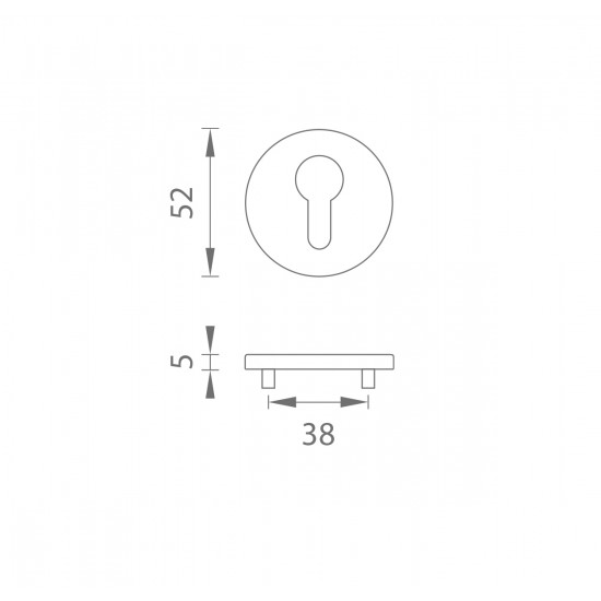 Okrúhla rozeta je vyrobená z materiálov vysokej kvality - zamak a je povrchovo upravená. Rozeta má priemer 52 mm, hrúbku 5 mm a oválny otvor pre interiérový kľúč (BB), otvor pre cylindrickú vložku (PZ), WC set s vmontovaným kľúčom. Balenie obsahuje 2 kusy roziet (pár) a rozety WC sú v balení ako set.