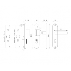 Štítová kľučka na vchodové a bezpečnostné dvere s bezpečnostným oválnym štítom bez prekrytia cylindrickej vložky je vyrobená z hliníka a je povrchovo upravená. Oválny štít má rozmery 52 mm x 242 mm a hrúbku 15 mm.Je vhodná na exteriérové vchodové dvere a do prostredia so zvýšenou vlhkosťou.