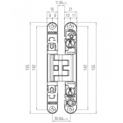 Bezfalcové (bez polodrážky) – tri skryté pánty striebornej farby (možnosť voľby čiernej farby za príplatok) – sú súčasťou zárubne (v cene)