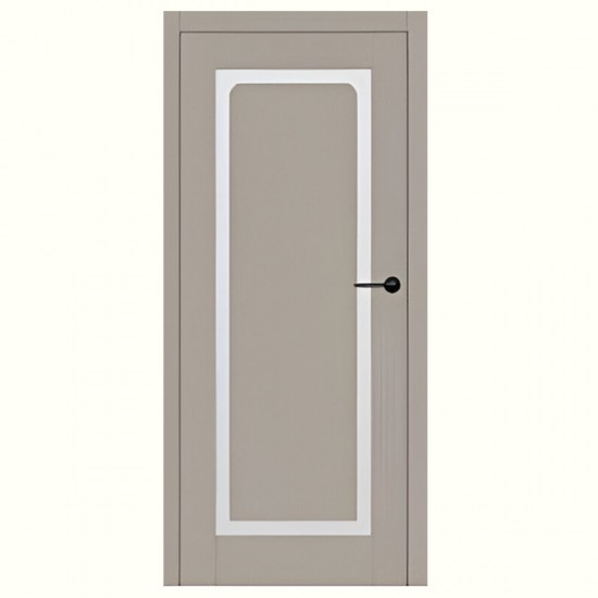 Konštrukciu dverí tvorí masívny rám vyrobený technológiou STILE. Vertikálne a horizontálne rámy vyrobené z MDF s povrchovou úpravou laminát ST CPL s povlakom ANTIFINGER. Panely vyrobené z HDF dosky, hrúbka: 3 mm, lepené na oboch stranách skla. Okraj panelu je vždy vyrobený v čiernej farbe. Šírka priehľadnosti medzi okrajom rámu a nalepeným panelom je 50 mm.