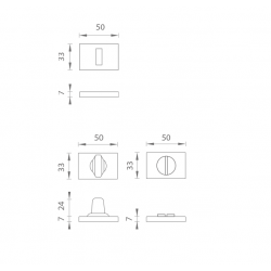 Obdĺžniková rozeta je vyrobená z materiálov vysokej kvality - zamak a je povrchovo upravená. Rozeta má rozmery 50 x 33 mm, hrúbku 7 mm a oválny otvor pre interiérový kľúč (BB), otvor pre cylindrickú vložku (PZ), WC set s vmontovaným kľúčom. Balenie obsahuje 2 kusy roziet (pár) a rozety WC sú v balen..