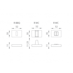 Obdĺžniková rozeta je vyrobená z materiálov vysokej kvality - mosadz/ zamak a je povrchovo upravená. Rozeta má rozmery 52 mm x 35 mm a hranatý otvor pre interiérový kľúč (BBQ) alebo WC set s vmontovaným kľúčom. Balenie obsahuje 2 kusy roziet (pár) a rozety WC sú v balení ako set...