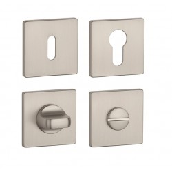 Hranatá rozeta je vyrobená z materiálov vysokej kvality - zamak a je povrchovo upravená. Rozeta má rozmer 52x52 mm, hrúbku 5 mm a oválny otvor pre interiérový kľúč (BB), otvor pre cylindrickú vložku (PZ), WC set s vmontovaným kľúčom. Balenie obsahuje 2 kusy roziet (pár) a rozety WC sú v balení ako s..