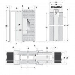 Stavebné puzdro ECLISSE EWOLUTO pre jednokrídlové posuvné dvere do murovanej steny o šírke prechodu L: 700 mm a výškach H: 1970 mm alebo 2100 mm, s možnosťou montáže bremena.