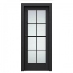 Rámové Interiérové Dvere PORTA Verte Home Čierne model B.5 Konštrukčné prevedenie dverí: Krídla sa v závislosti od modelu skladajú z horizontálnych rámov a panelov z matných skiel vyrobených z tvrdeného skla s hrúbkou 4 mm. Povrchová úprava: Fólia Super Mat Typ ot..